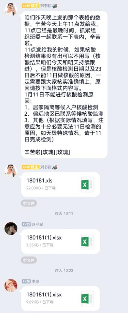 此外,其他党员同志也始终以身作则,严格遵守疫情防控相关规定,及时落实上级下达的各项任务,认真做好班级摸底排查、疫情通报、防疫措施宣传等工作,起到榜样带头作用,以充分发挥党支部的战斗堡垒作用,为尽快遏制疫情献出青春力量。