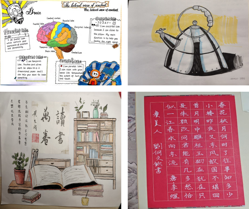 目前活动已收到投稿近50余份,投稿形式丰富多样:既有工整详实的高等数学课堂笔记,也有以水墨绘就的"读书万卷"画卷;既有图文并茂的大脑解剖手绘笔记,也有定格产品设计的速写作品。许多笔记采用思维导图、手账等形式,彰显了新时代青年的创新学习方式。后续,所有投稿作品将经过分类整理后,通过线上线下联动方式分期展示,持续营造"尚学笃行"的校园文化氛围。